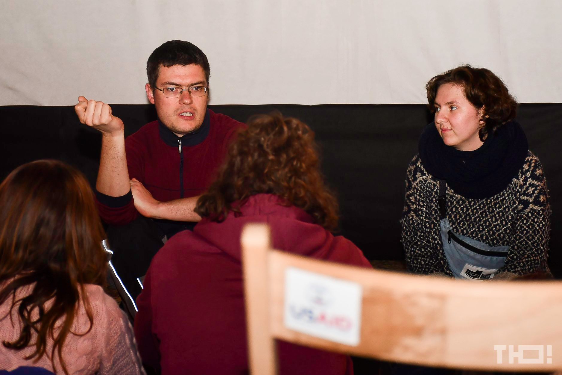 « Людей було так багато, тому шо вперше прийшли студенти якоїсь академії лідерства чи шось таке, і вони надиво дуже класно підключилися до тусні і розмов. Один зі студентів навіть потім поділився своїм інстаграмом де він досить нестандартно робить якісь вуличні відеозамальовки (дуже ліричні). Було дуже багато питань, на які лише ти міг би нормально відповісти. Я потім процитував твоє повідомлення про те шо краще шоби фільми знімали звичайні люди і не треба жодних обмежень (те шо ти вище надсилав). Ще один чувак з Маріуполя сказав шо твій фільм був дуже в тєму для нього шоби починати теж думати про осмислення своїх вуличних відосів - я в нього їх бачив лише кілька, але там може шось цікаве.  »